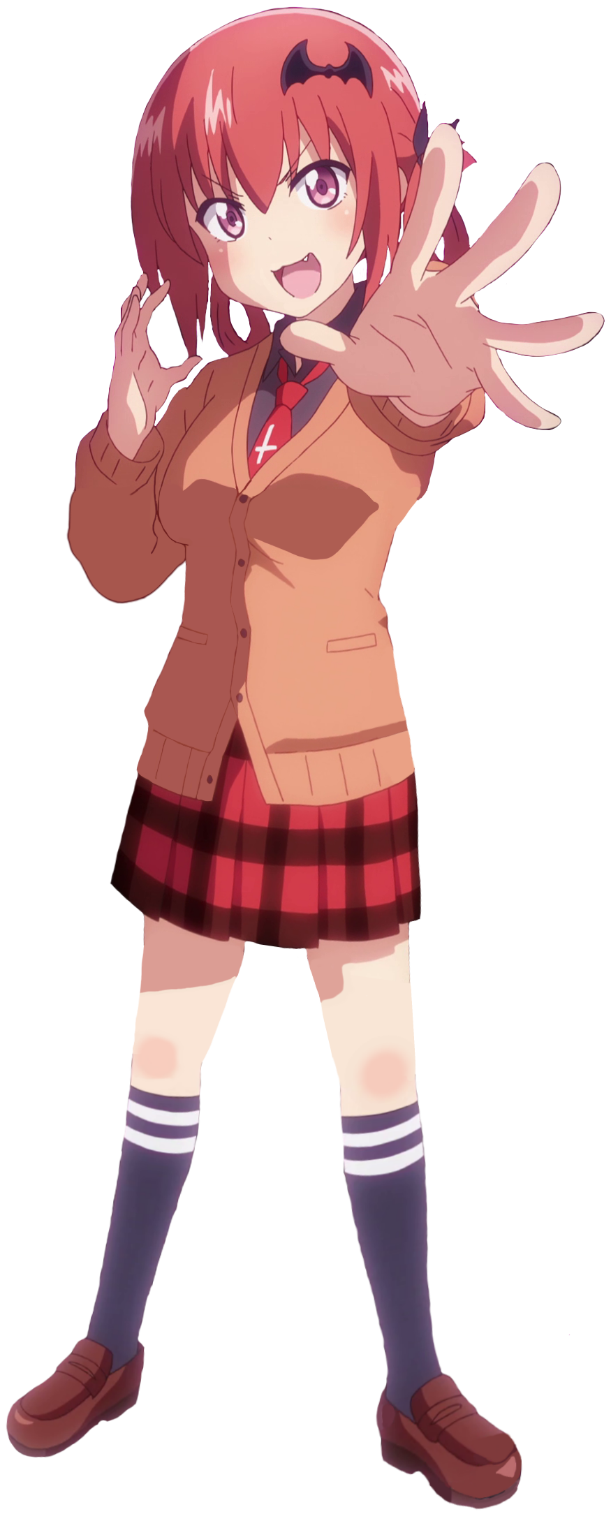 When it comes to being a true, evil being, Satanchia is all bark and no bite. She puts on such a show to be as dramatic as possible when her actions are either so mundane that nobody will care, or so stupid that it's obvious something will go wrong for her in some way. Despite how pathetic she is, she does come off as so geniunely endearing that her friends are willing to tolerate how annoying she is. Satania seems pathetic on the surface of her moveset, with an overabundance of situational standard attacks, special attacks that deal recoil damage, and general susceptibility to combos that results in her taking a lot of punishment. But that's where her true strength lies in: being underestimated. Sure, those attacks seem useless on paper, but in the right hands, situations, and a little bit of luck, Satania can actually weasle her way to victory and leave her opponents completely dumbfounded. She has high enough damage output, plenty of kill moves, and decent enough mobility that she can actually keep up with her rivals despite how clumsy her methods are. In order to unlock her full potential however, you have to play like the evil mastermind Satania so desprately wants to be, otherwise you might find yourself humiliated time and time again.
